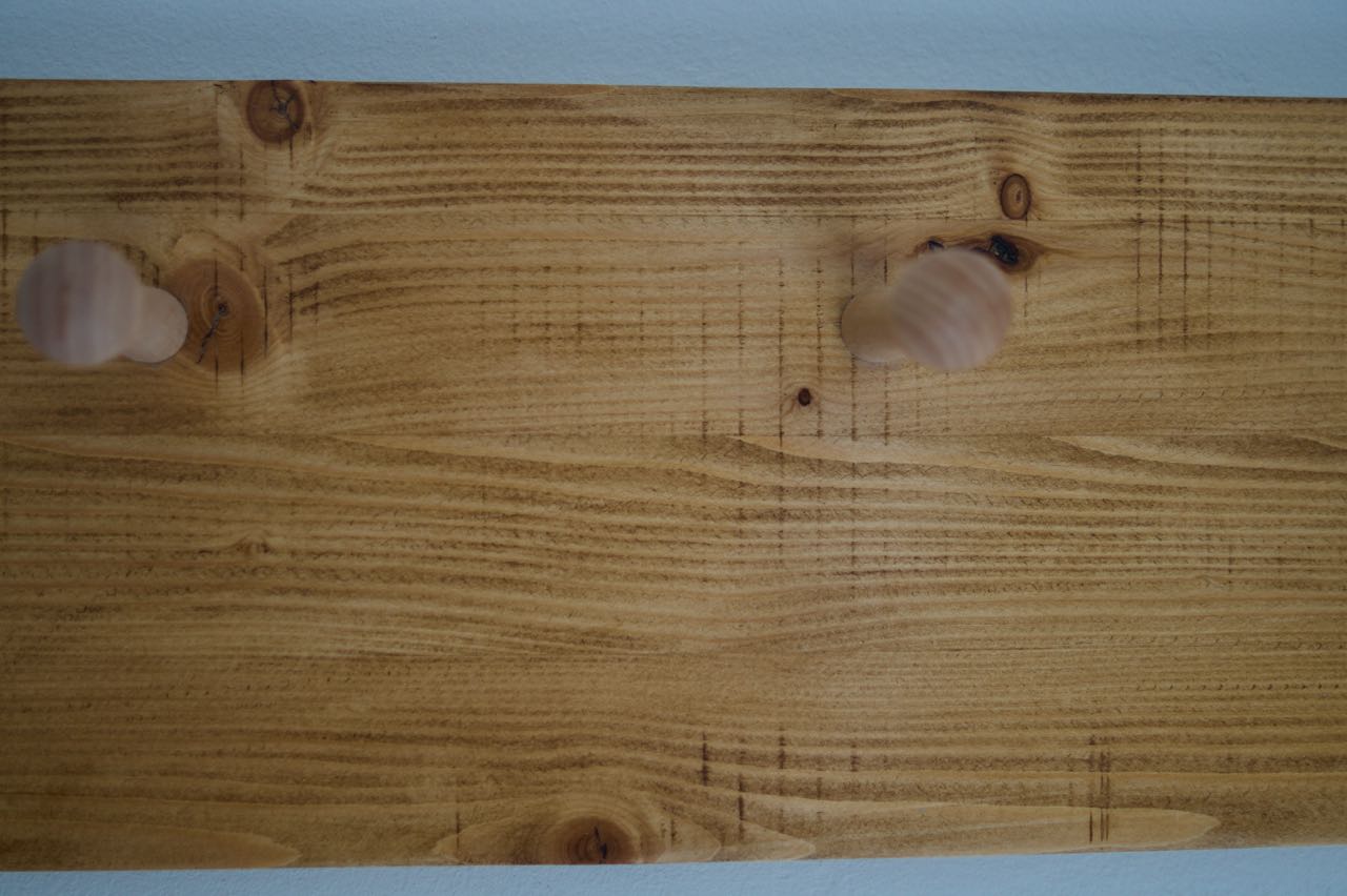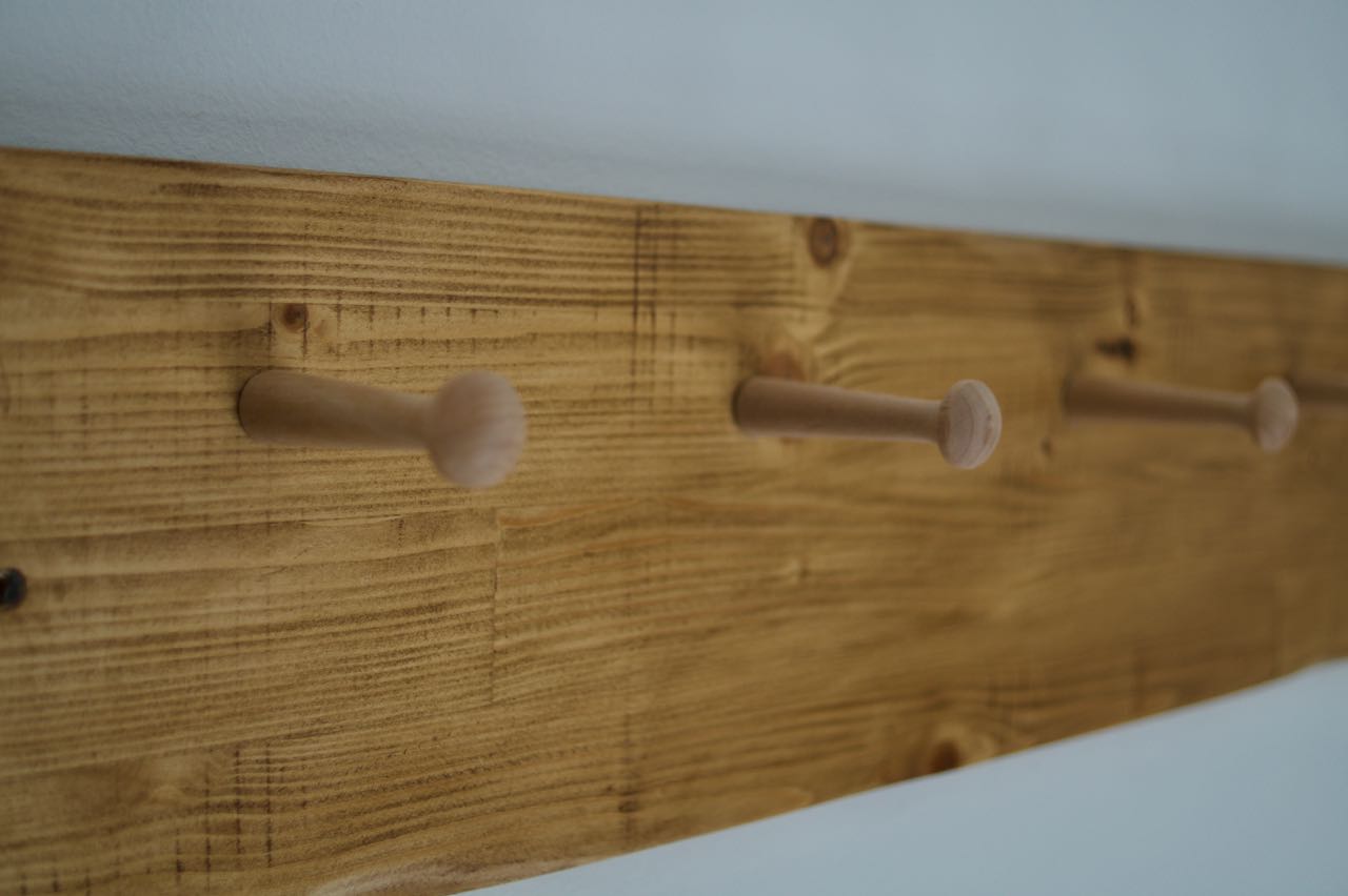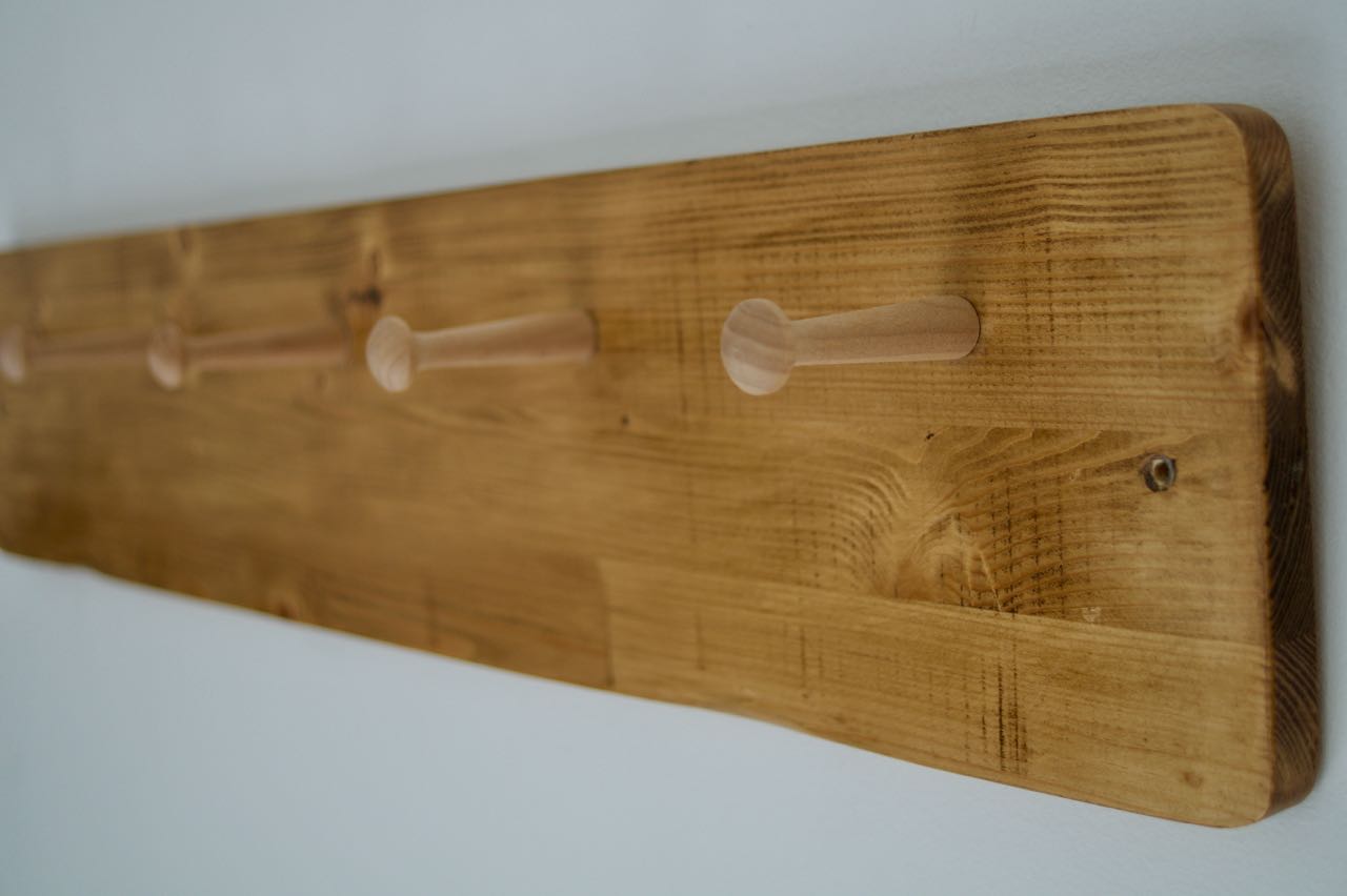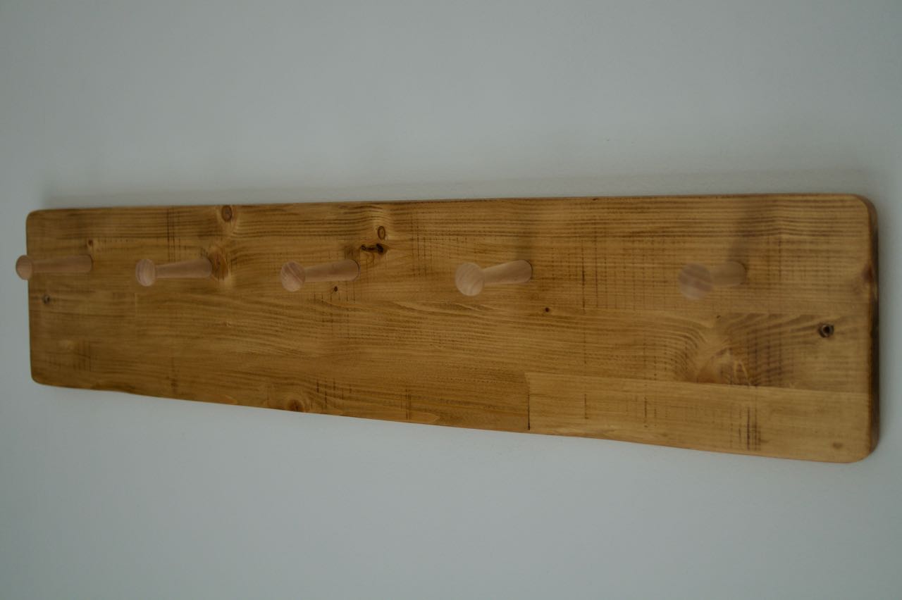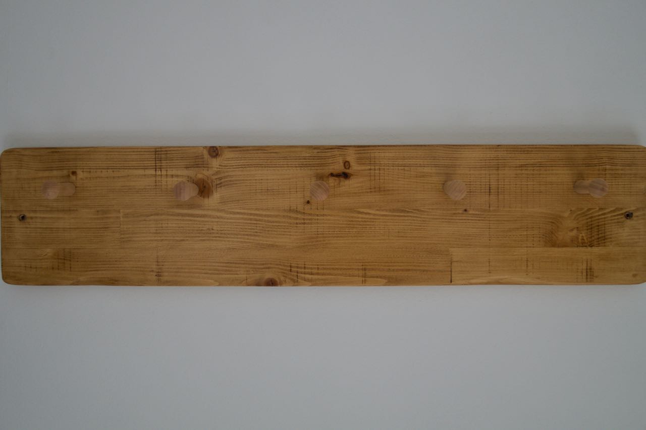 Made from quality 1.5cm wood and fitted with 5 hardwood pegs, Waxed and polished with Briwax Dark Oak.