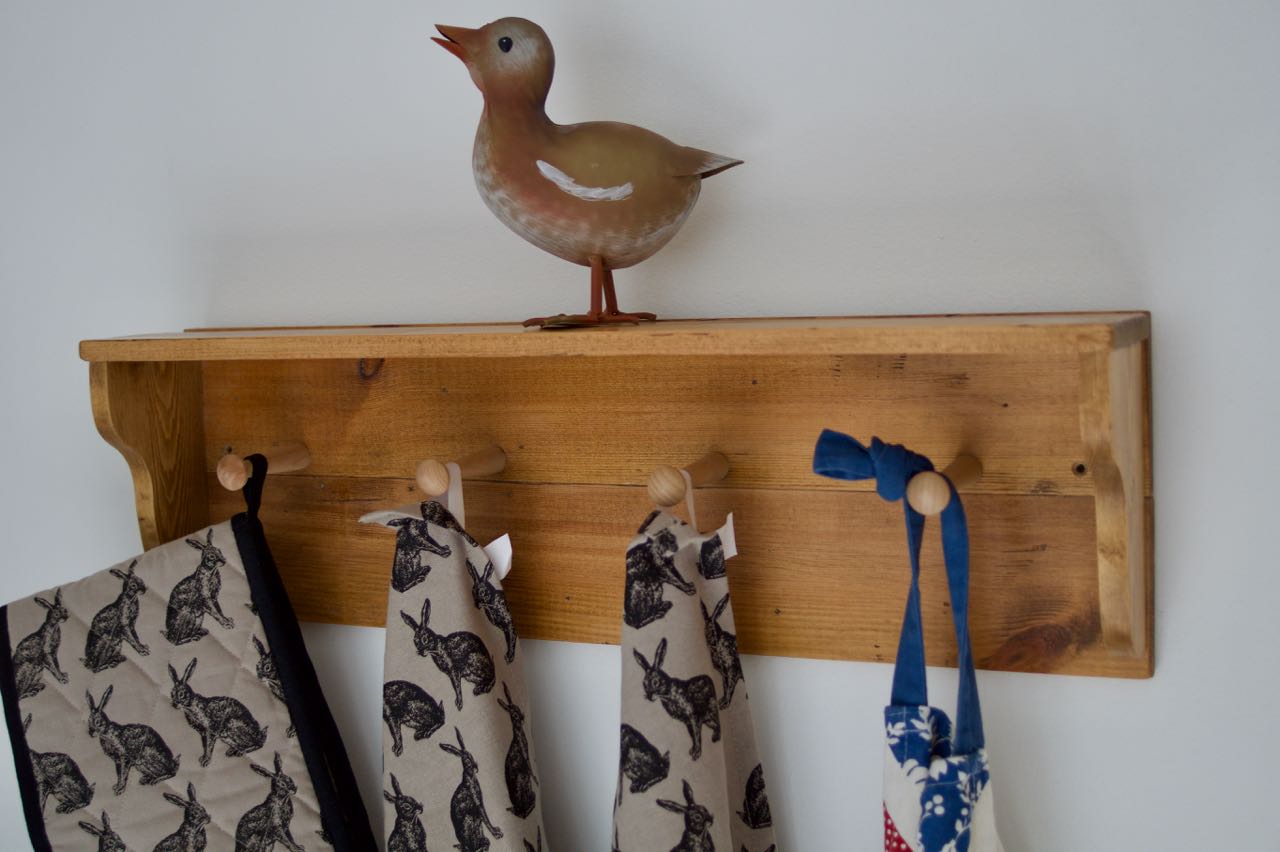 Handmade Rustic / Farmhouse style wall hanging Towel & Utensil Holder with shelf.