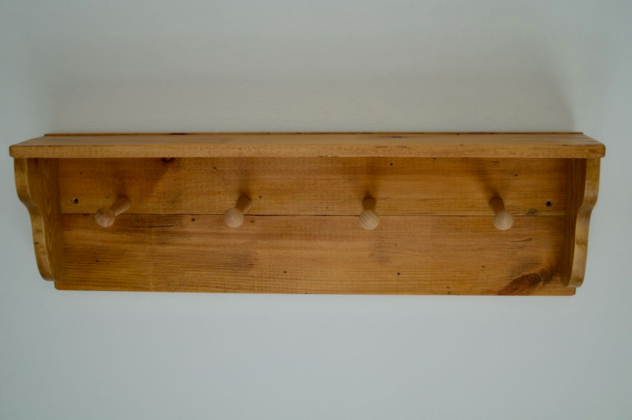 Farmhouse Style Wooden Kitchen Towel & Utensil Holder With Shelf & 4 Pegs