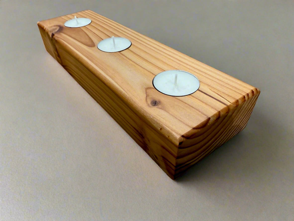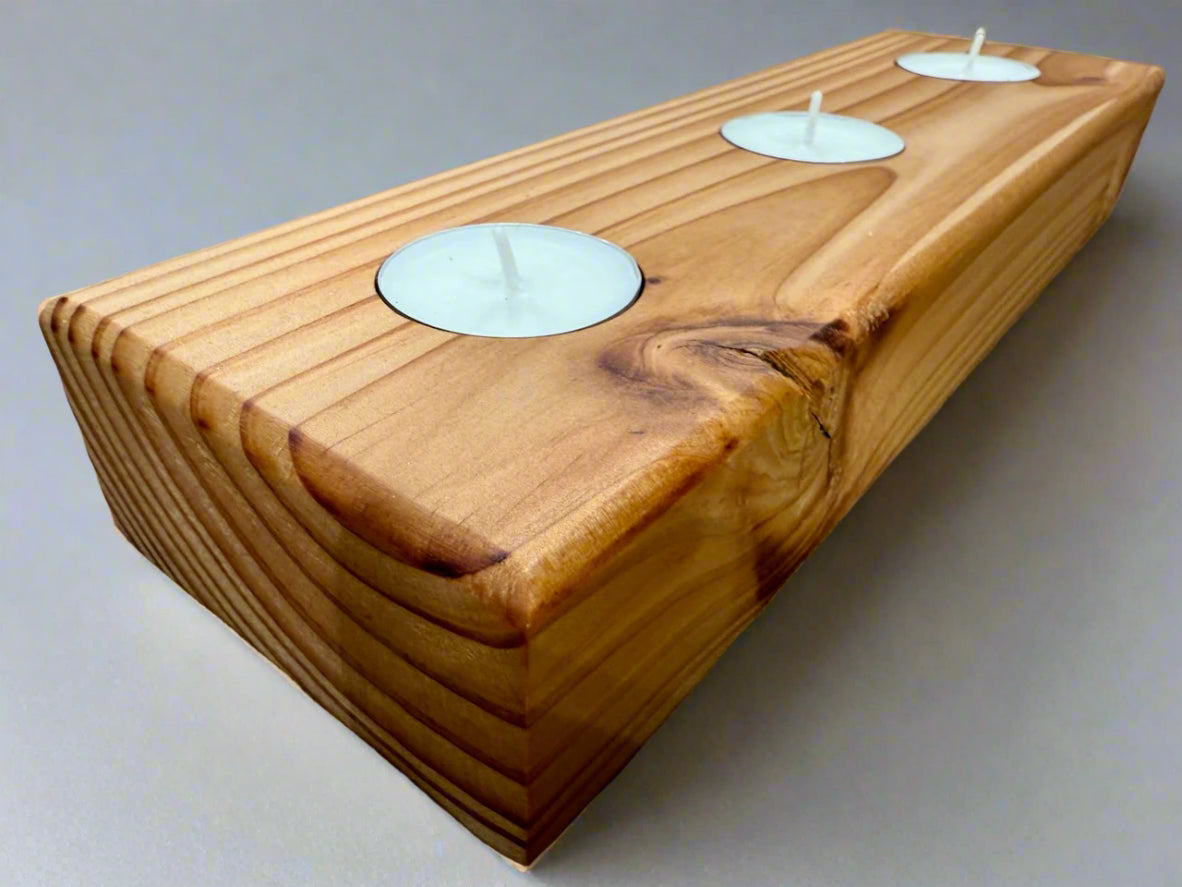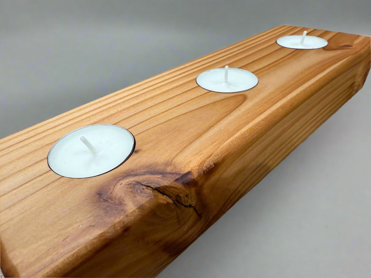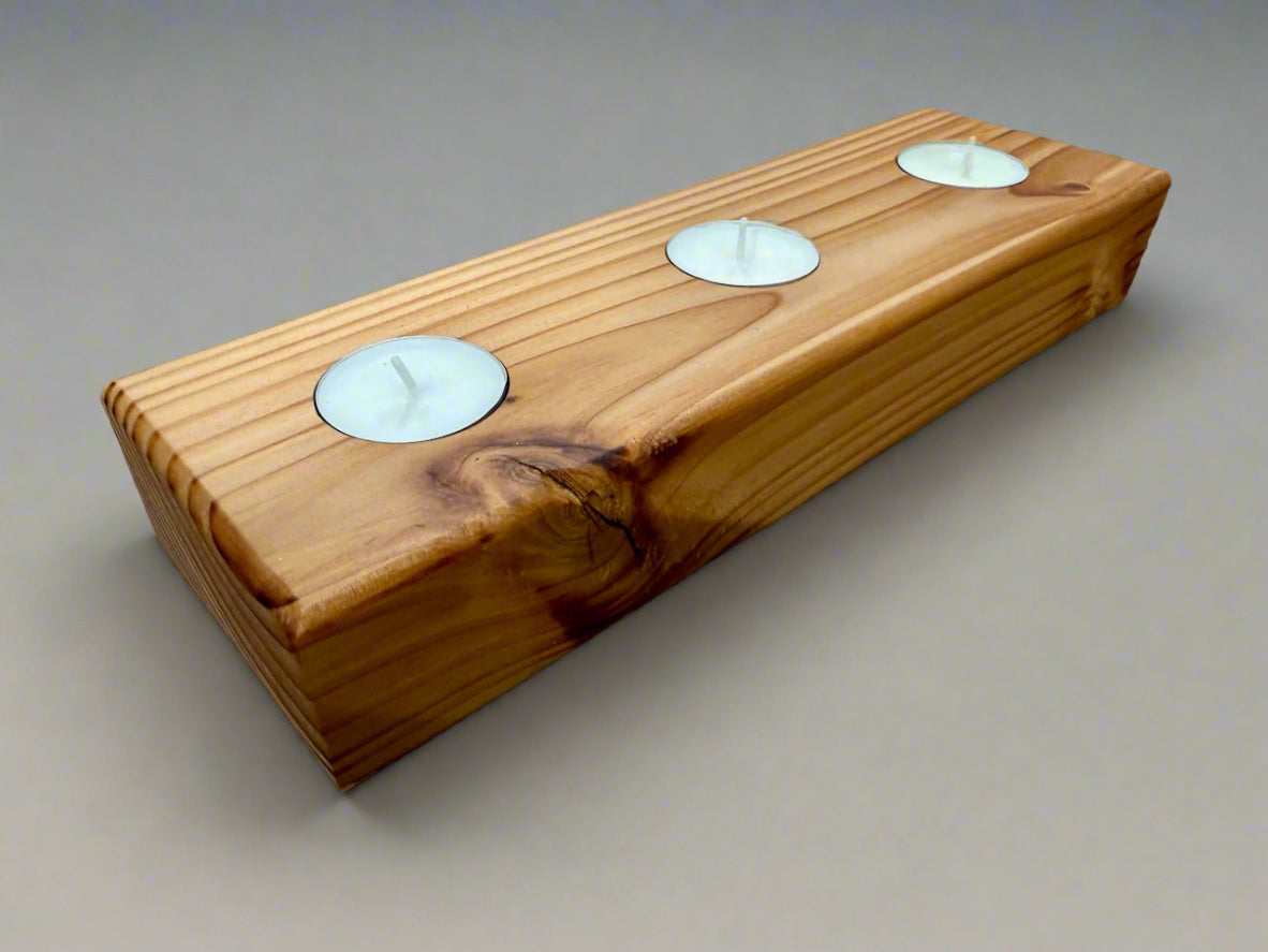 Handmade Wooden Solid Chucky Candle Holders for 3x Tea lights Centrepiece